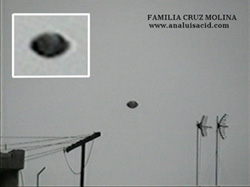 2006-The Journal of Hispanic Ufology-September 1, 2006. On Monday, August 7, 2006, the Cruz Molina family witnessed the transit of a possible UFO that traveled at low altitude over the district of Culhuacán, southeast of the Mexican capital. The video has a duration of 13 seconds and was recorded by Mr. Arturo Cruz Granados at 15:30 hours using a Sony TRV-328 camera. The exulting voices of the eyewitnesses are heard on the recording, as well as the propeller sounds of a helicopter flying over the area. Almost at the end of the video, it can be seen that the object rotated on its own axis until it lost itself behind a house.