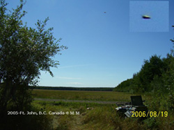 2006-Ft. St. John, B.C. Canada-I took this photo on August 20, 2006 while helping a friend on a moose hunt. It was taken using a Kodak Easyshare c340 digital camera at around 1:30 PM. It was seen about 20 miles north of Ft. St. John, B.C. Canada. My friend has no interest in this subject so when I saw it approaching at a high rate of speed I just grabbed my camera and snapped a couple quick shots without saying anything to him. Photograph © M.M.