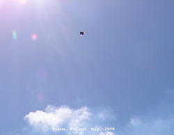 2006-Toruñ [woj.Kujawsko-Pomorskie], May 20th 2006, 13:39:25.-The photo was taken on May 20th 2006 at 13:39 on a certain Torun housing estate. The anonymous witness didn't see the UFO taking the photo. As he wrote, he was going to took photos of some products to a catalog, setting the balance of white and snapping some random photos. No sounds accompanied the alleged UFO manifestation.