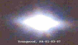 2007-Youngwood, PA-Researcher: Stan Gordon reports, "On the evening of January 3, 2007, something unusual was observed in the sky by three people traveling in a vehicle in Westmoreland County. The witnesses never officially reported their experience. Soon after the sighting, the witnesses were having dinner with a local businessman. During their conversation, they mentioned their sighting. They also showed the man the photo of the object which had been taken on their cell phone camera. The businessman suggested that they talk with me about what they had observed. I was put in touch with the family and conducted a detailed interview." image copyright unknown-witness remains anonymous