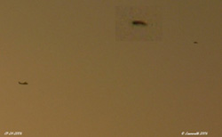 006-Coral Springs – The images seen here were sent in by Carmen Padila. They were taken on July 14, 2006 at about 7:00 P.M. There were three witnesses to the object. I sent an email to Carmen requesting more information about her sighting, and received two more photographs of the UFO. I also asked her about the camera, and if the object was moving. She replied: